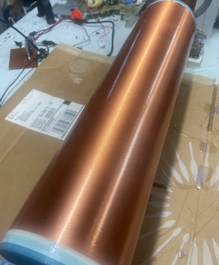 Once the coil had been wound, I covered it in 3 or 4 layers of polyurethane coating to ensure the windings would stay seated in the proper spots and that the coil had some level of protection outside of the enamel.